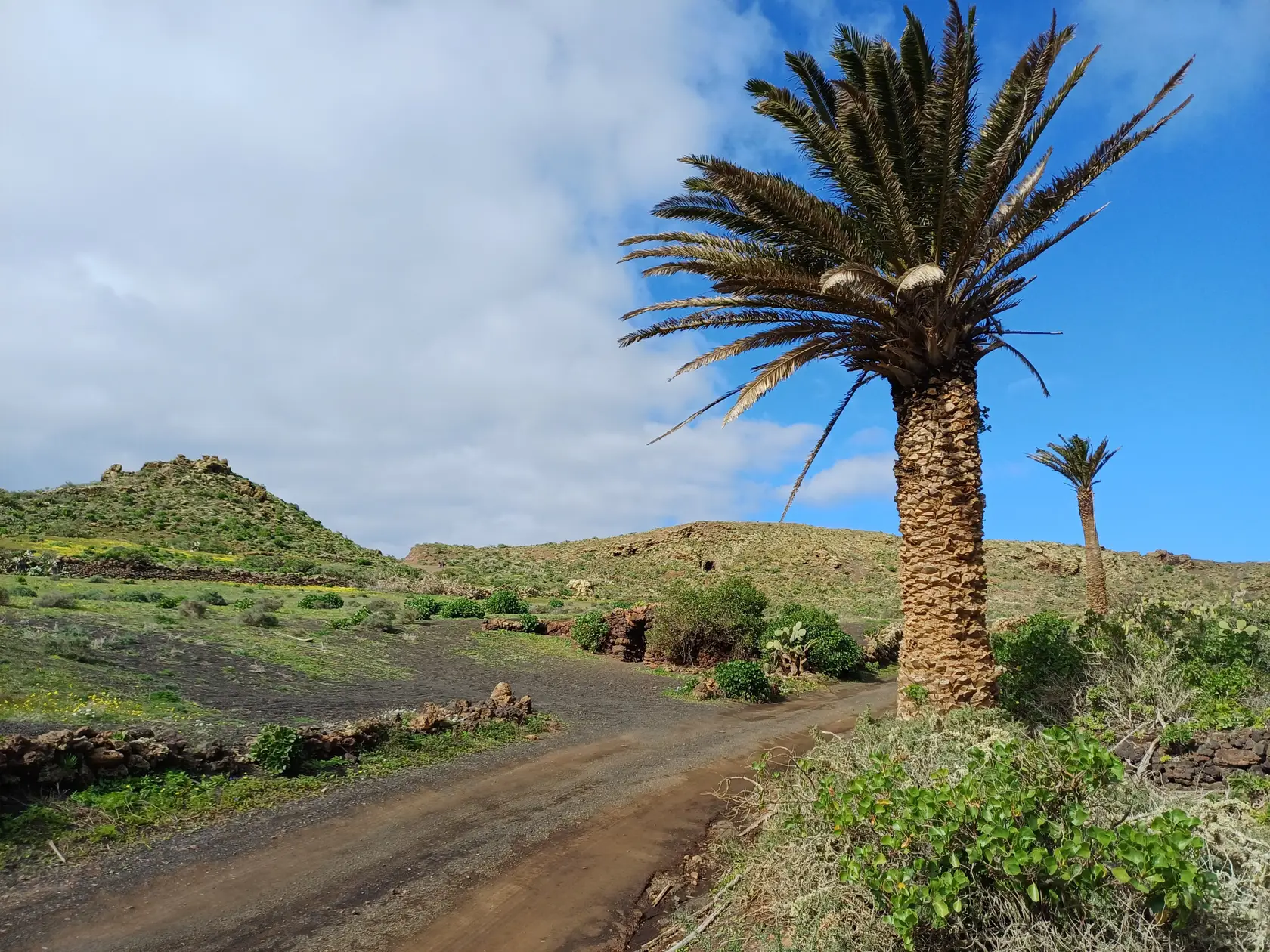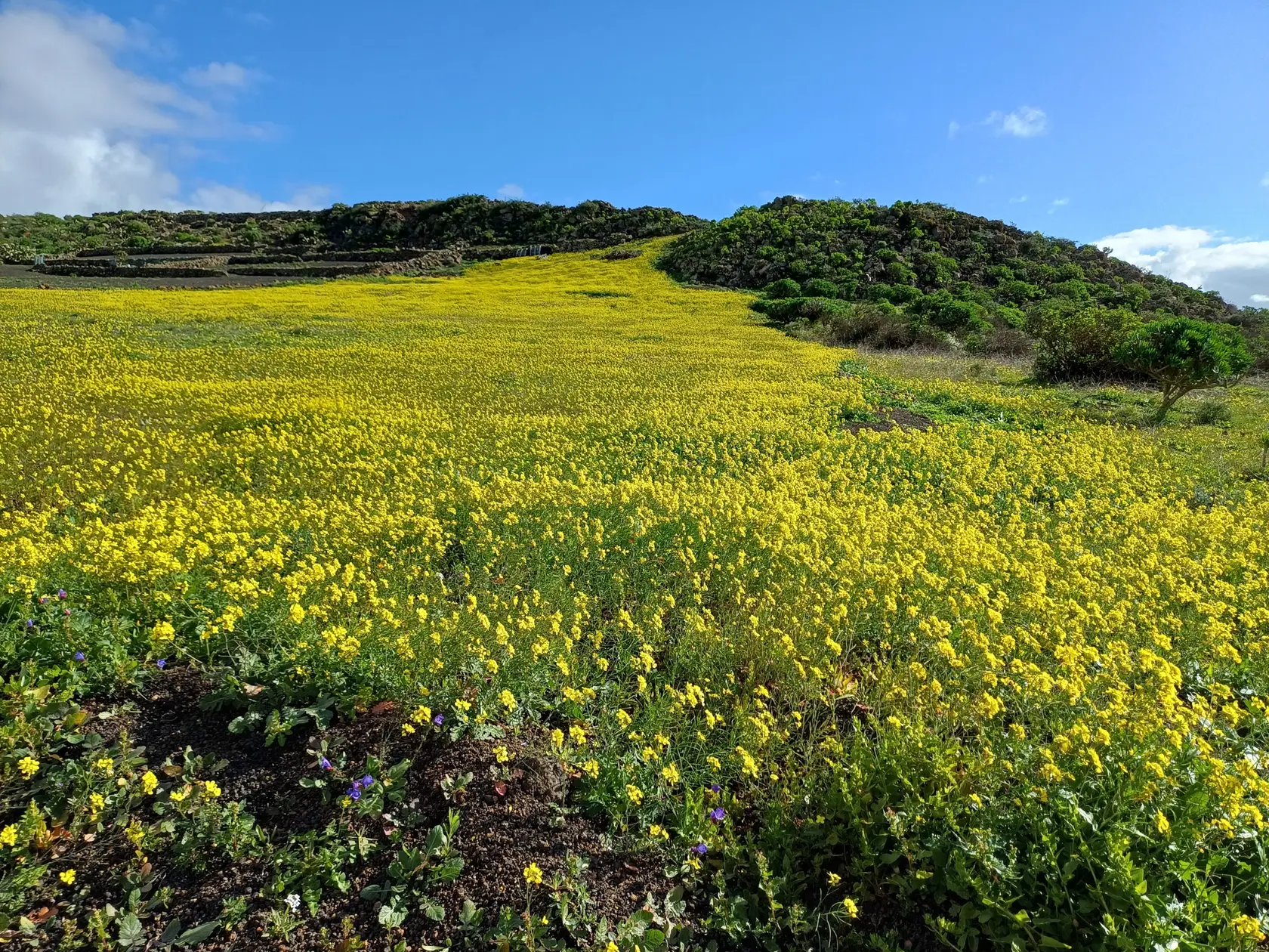 Nach üppigen Regenfällen seit November 2025 ist die Insel grün, und es fängt allerorts an zu blühen. Deshalb sind wir heute auf Pisten und Wegen geblieben, um die ersten Blütenteppiche genießen zu können.